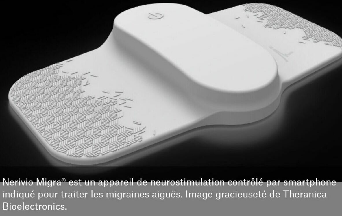 Ces petits appareils, placés sur le front ou à l’arrière de la tête, envoient des pulsations qui viennent, d’une certaine manière, court-circuiter le message douloureux de la crise de migraine. Certains d’entre eux peuvent se placer autour du bras et être contrôlés à distance.